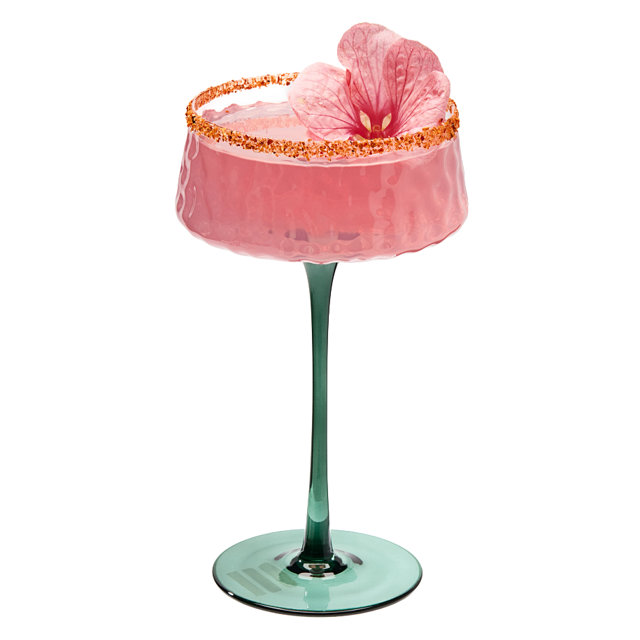 Tres HIBISCUS MARG es un cóctel vibrante con un tentador color rojo rubí.